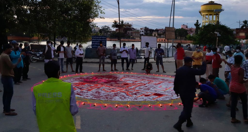 भारतको अयोध्यामा राम मन्दिरको शिलान्यासका लागि भूमि पुजन भएको खुसियालीमा जनकपुरधाममा भव्यरुपमा दिप प्रज्वलन गरिएको छ ।जनकपुरधामस्थित जानकी मन्दिरसहित विभिन्न मठ मन्दिरमा भूमि पुजनको खुशियालीमा जनकपुरधाममा रामधुन बजाउँदै भजन किर्तन गरिएको छ भने साँझमा घर आँगन, सडक पेटिका लगायतका क्षेत्रमा समेत रंगोली बनाएर दिप प्रज्वलन गरिएको छ ।लामो समयदेखि विवादमा रहेको राम मन्दिर निर्माण सम्बन्धमा भारतको सर्वोच्च अदालतले राम मन्दिरको पक्षमा निर्णय सुनाएपछि आज भएको भूमि पुजनको अवसरमा भगवान रामको ससुराली जनकपुरधाममा विहान भजन किर्तन र साँझमा दिप प्रज्वलनसहित रंगोली बनाएका छन् ।