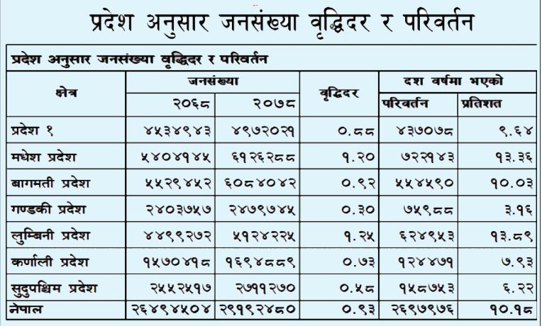 – हिमालको जनसंख्या ६ दशमलव ७३ पतिशतबाट घटेर ६ दशमलव ०९ प्रतिशत भयो ।
