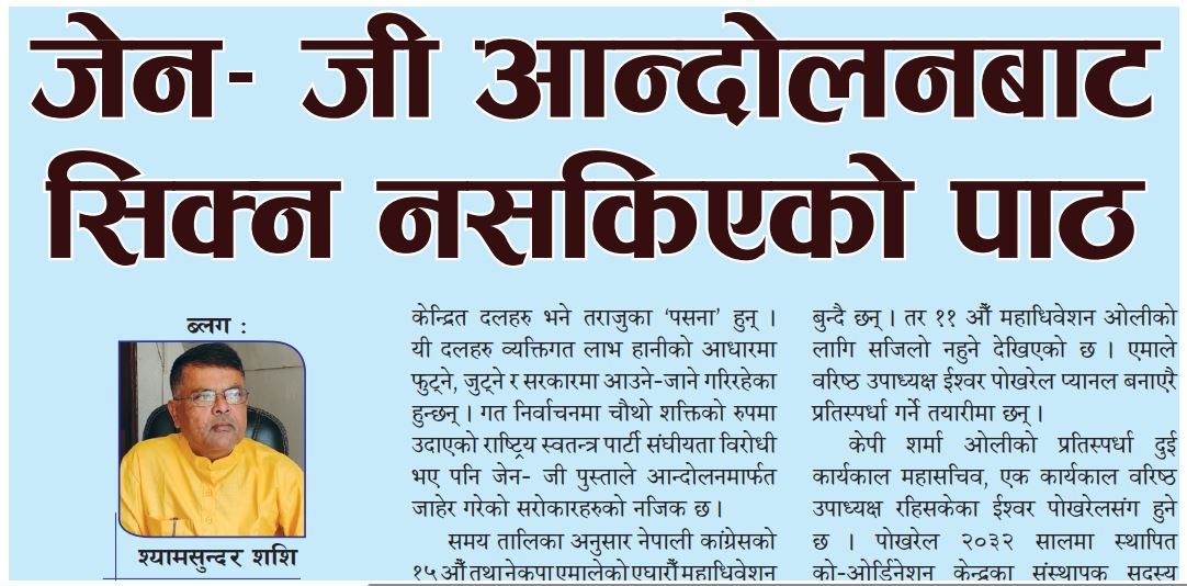 देश–दुनियालाई नै तरंगित पार्नेगरि भदौ २३ र २४ गते नेपालमा भएको जेन– जी आन्दोलनले झण्डै दुई तिहाइ बहुमतको एमाले–कांग्रेस गठबन्धनको सरकार ढल्यो । कांग्रेस सभापति शेरबहादुर देउवाले बुढेसकालमा भौतिक आक्रमण बेहोर्नु प¥यो । एमाले अध्यक्ष तथा तत्कालीन प्रधानमन्त्री केपी शर्मा ओलीलाई झण्डै दुई साता सेनाको सुरक्षा घेराभित्र बस्नु प¥यो ।