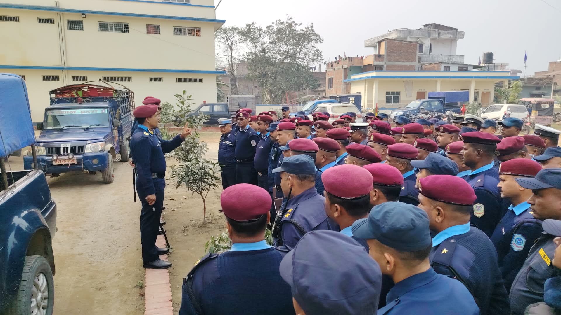 शुक्रबार अनुगमन एवम भ्रमणका क्रममा जिल्ला प्रहरी कार्यालय पुगेका डिआइजी थपलियाले कार्यालय प्रमुख प्रहरी उपरीक्षक (एसपी) सिताराम रिजालसहित उपस्थित प्रहरी कर्मचारी तथा निर्वाचन सुरक्षामा खटिने प्रहरीहरुलाई सम्बोधन गरेका थिए।