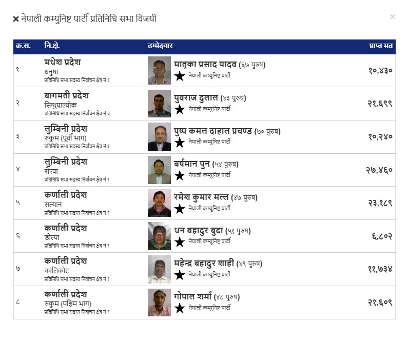 निर्वाचन आयोगले मातृका यादवको जित आफ्नो वेबसाइटमा दर्ता गरेको छ।