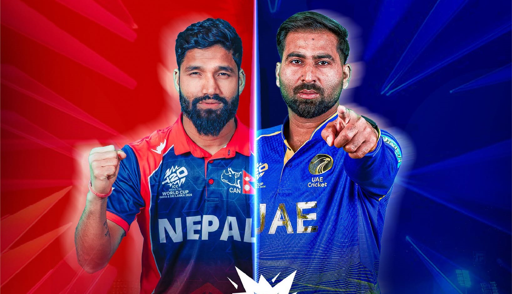 नेपाल र यूएई चीर परिचित प्रतिद्वन्द्वी हुन्। टी–२०आईमा दुई टोलीबीच ११ खेल भएका छन्। नेपालले ६ खेल जित्दा यूएई ५ पटक विजयी भएको छ। कीर्तिपुरमा एकमात्र खेल हुँदा उक्त खेल यूएईले जितेको थियो।