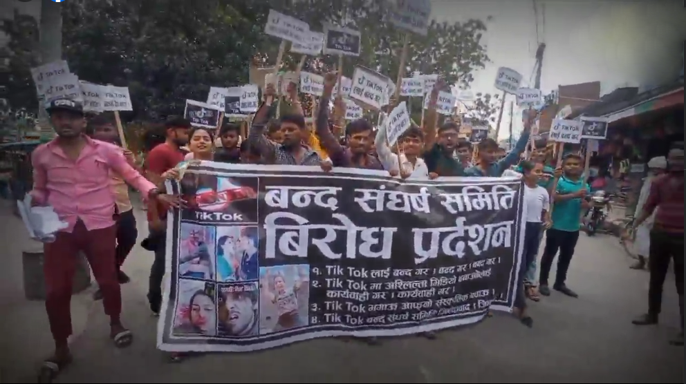 टिकटक बन्द गर्नुपर्ने माग गर्दै जनकपुरधाममा युवाहरुले गरे प्रदर्शन