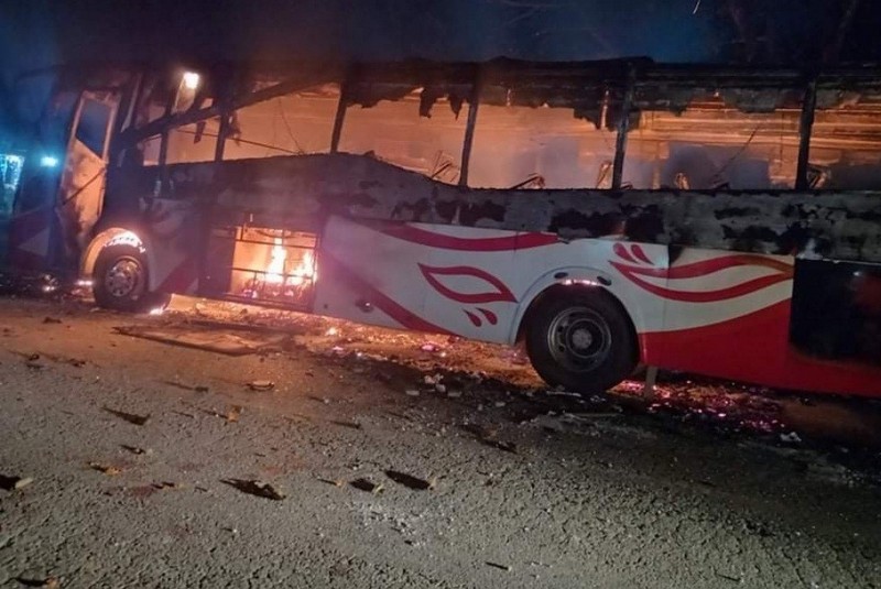 बसको ठक्करबाट २ जनाको मृत्यू, ८ घाइते, बसमा आगजनी