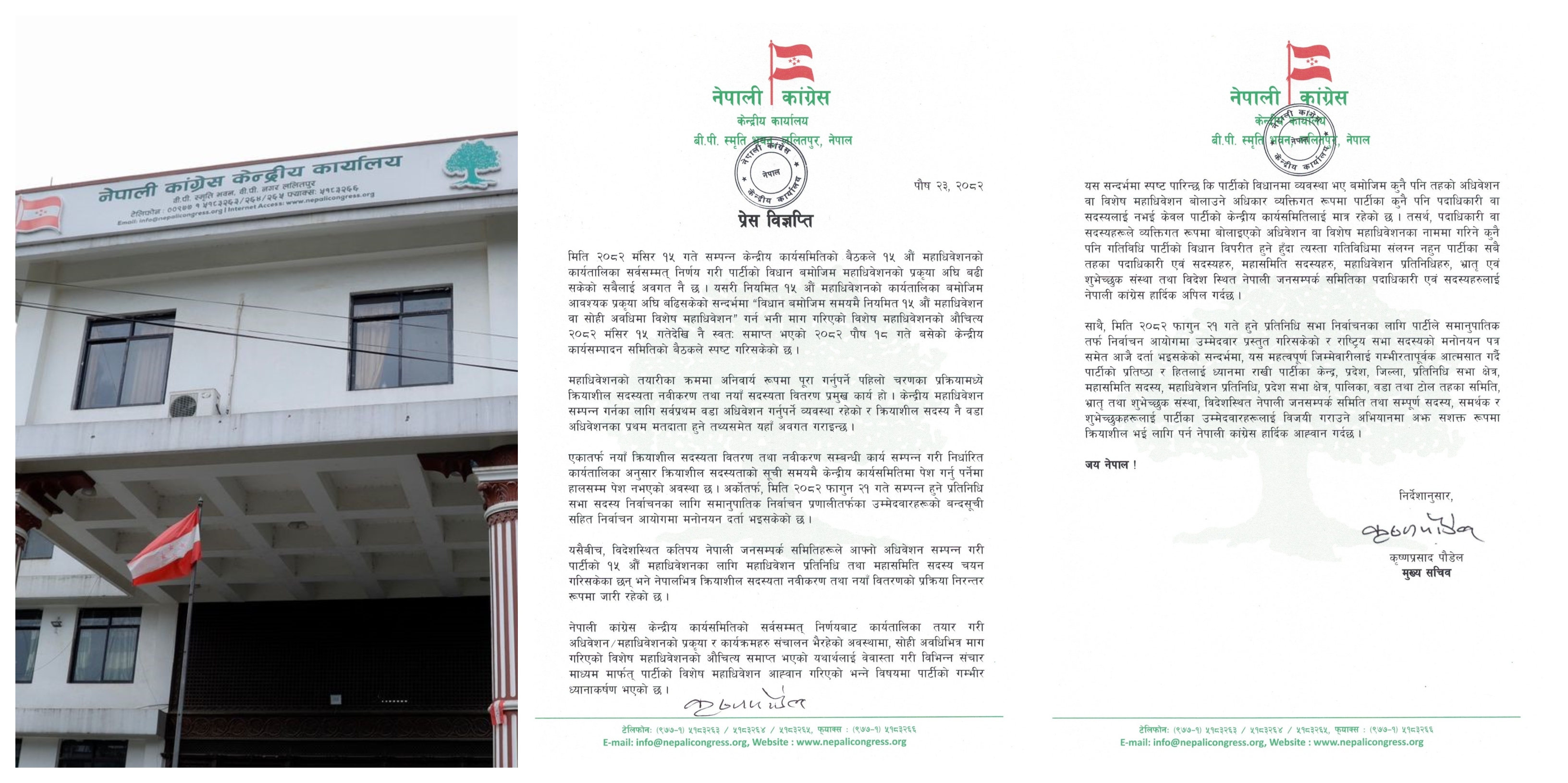 महामन्त्रीहरुले बोलाएको विशेष महाधिवेशनमा सहभागी नहुन कांग्रेसको आग्रह