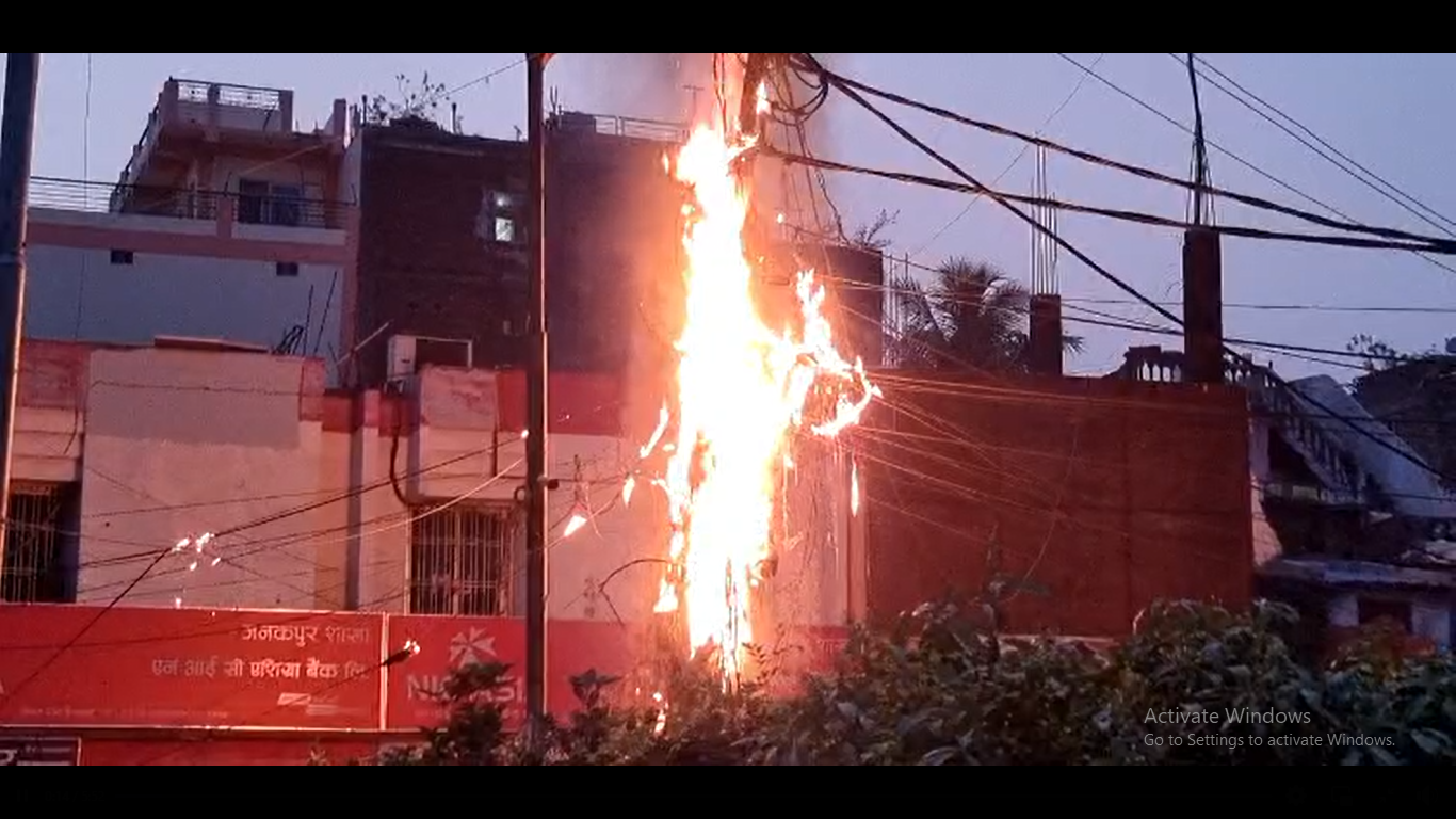 जनकपुरधामको राजदेवी मन्दिर अगाडिको विद्युत ट्रान्सफरमा आगलागी