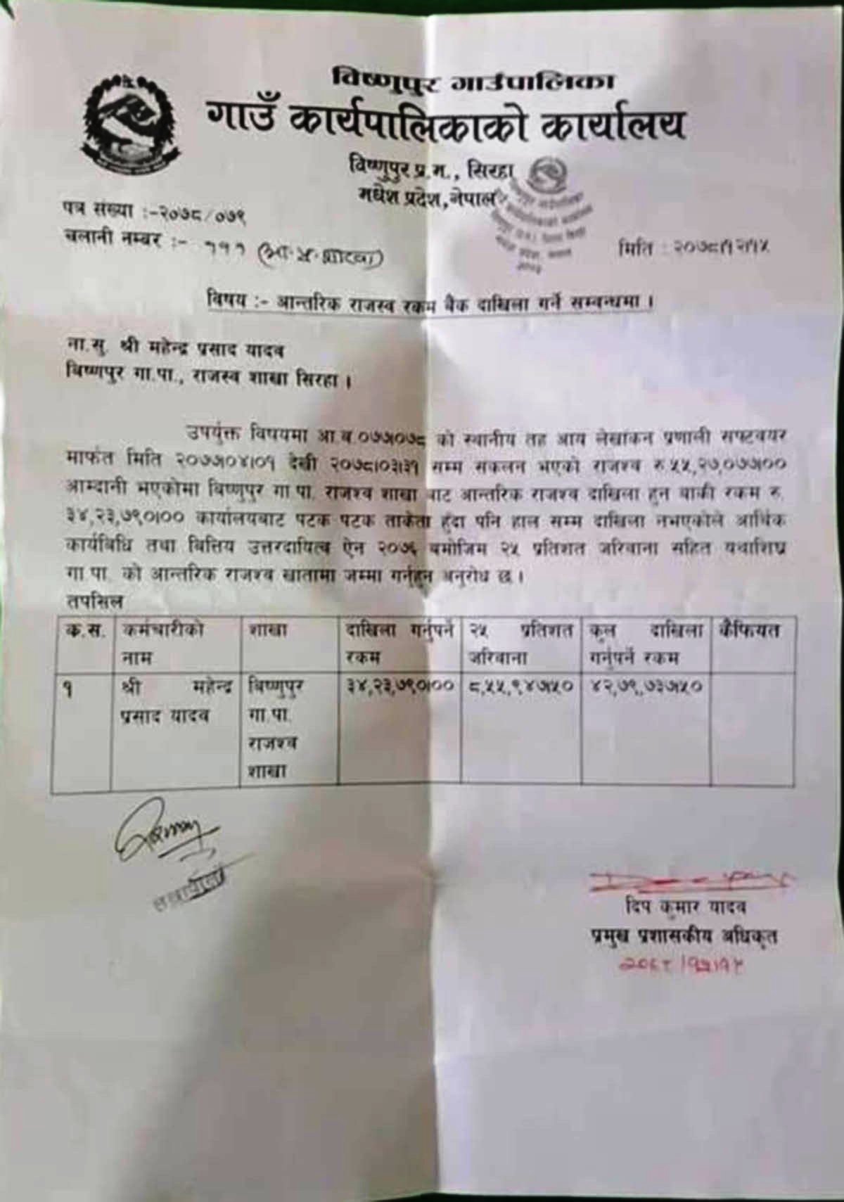 नासुद्वारा चौतीस लाखभन्दा बढी राजस्व गायब