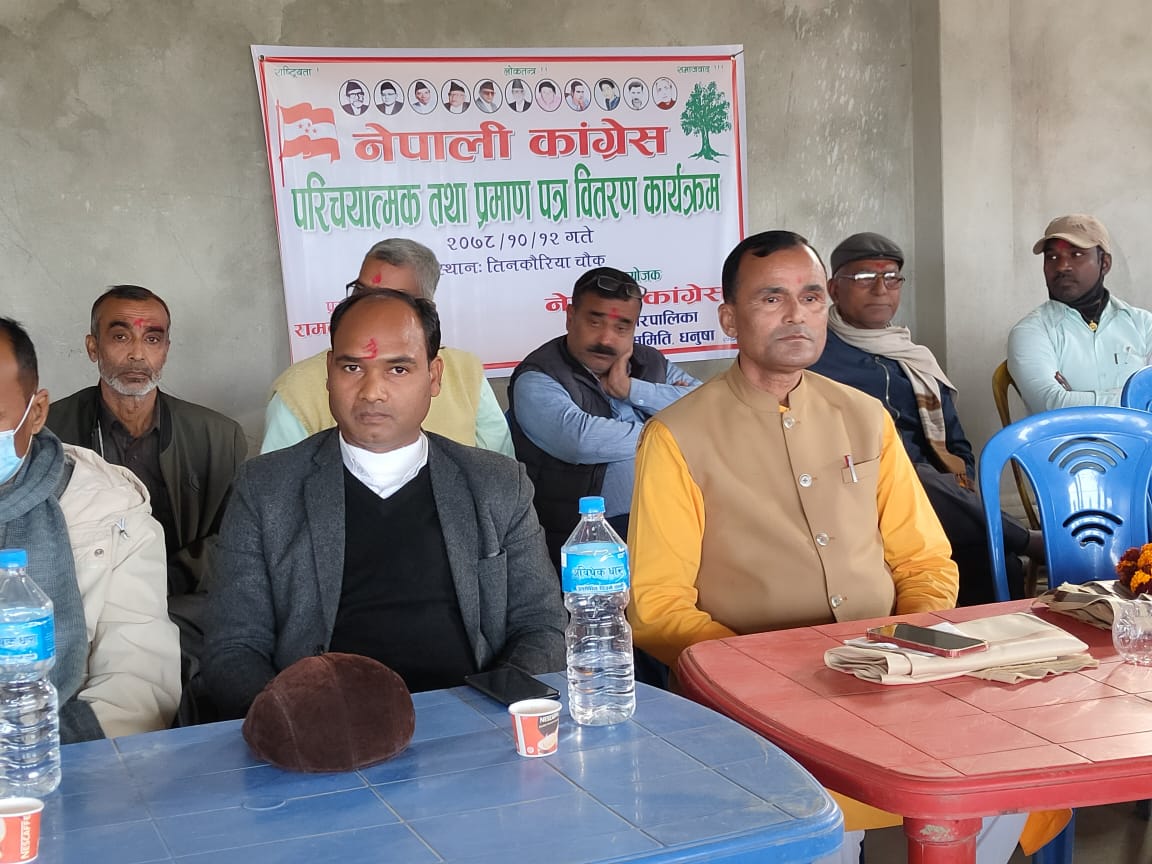 नेपाली कांग्रेस विदेहनगरपालिकाको नगर समितिका नवनिर्वाचित पदाधिकारीहरुलाई प्रमाण पत्र