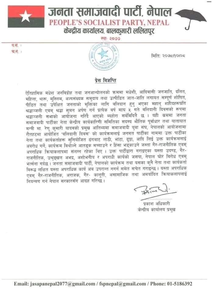 काम गर्न देउ भन्दै जसपाद्वारा प्रर्दशन