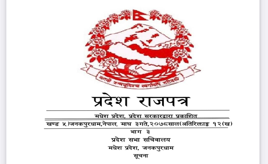 मधेश सरकारले राजपत्रमा सच्यायो नेपालको नक्सा