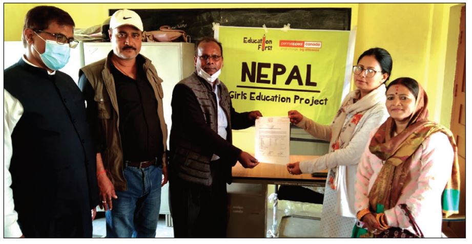 माण्डवीद्वारा विद्यालयलाई सामग्री हस्तान्तरण