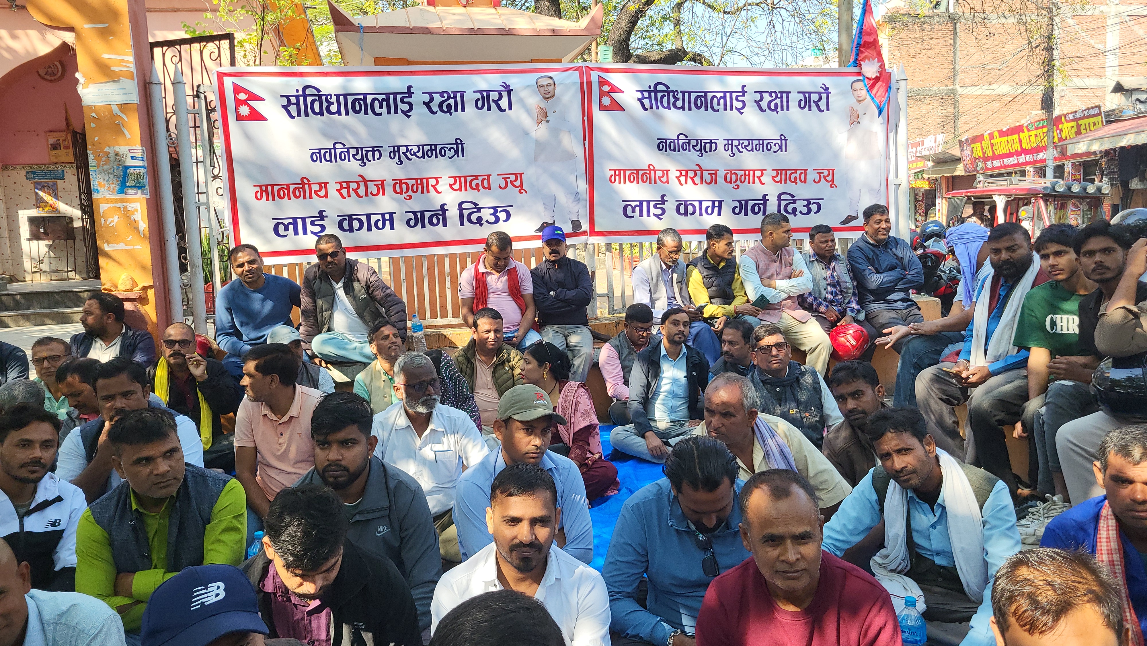 मुख्यमन्त्री सरोज कुमार यादवको समर्थनमा जनकपुरधाममा एमालेको धर्ना