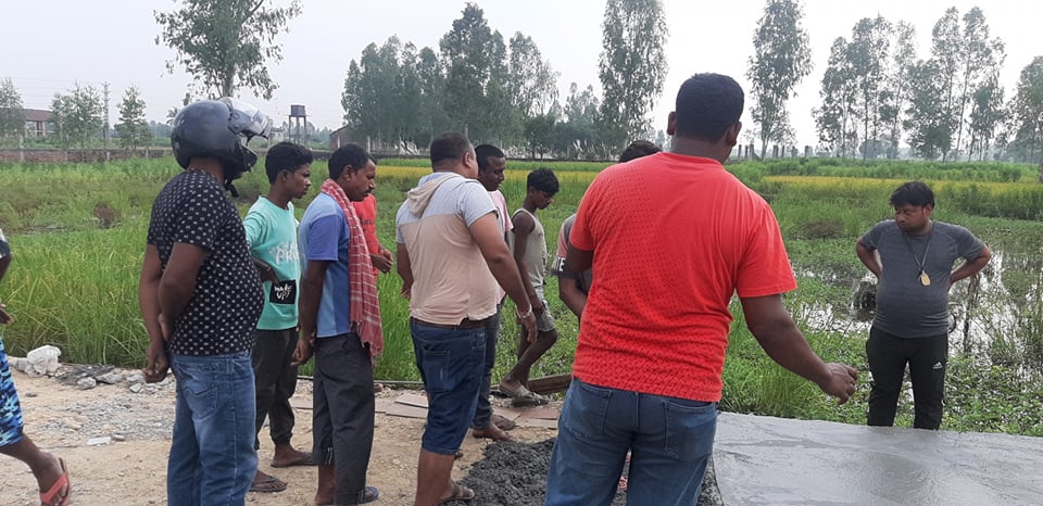 गुणस्तरहीन रहेको भन्दै सडक ढलान कार्य अवरोध