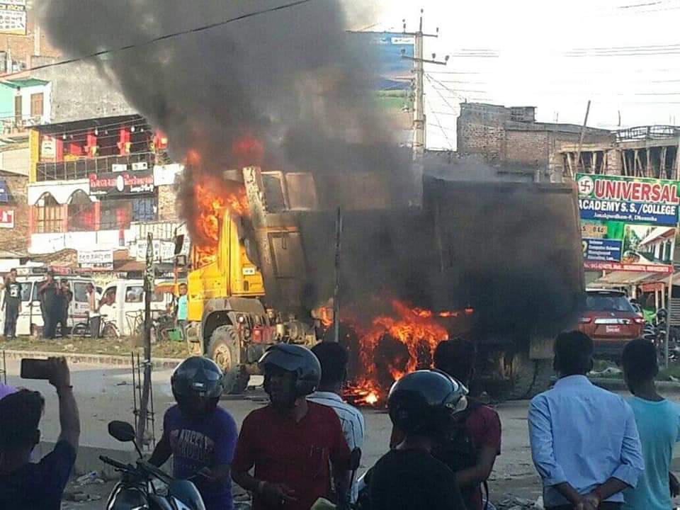 जनकपुरमा टिपरको ठक्करबाट १ जनाको मृत्यु, स्थानीयले लगाए आगो