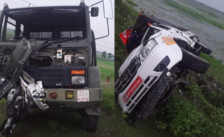सप्तरीमा सेनाको गाडी र पिकअप भ्यानको ठक्कर, एक जनाको मृत्यु, दुई जना घाइते