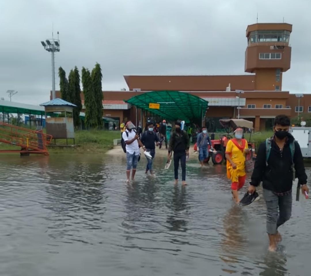 जनकपुर विमानस्थलमा पानी जमेपछि…
