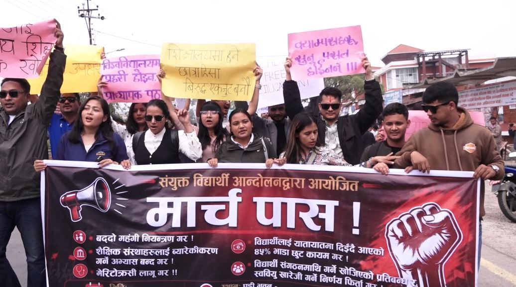 विभिन्न विद्यार्थी सङ्गठनद्वारा विरोध प्रदर्शनसहित मार्च पास